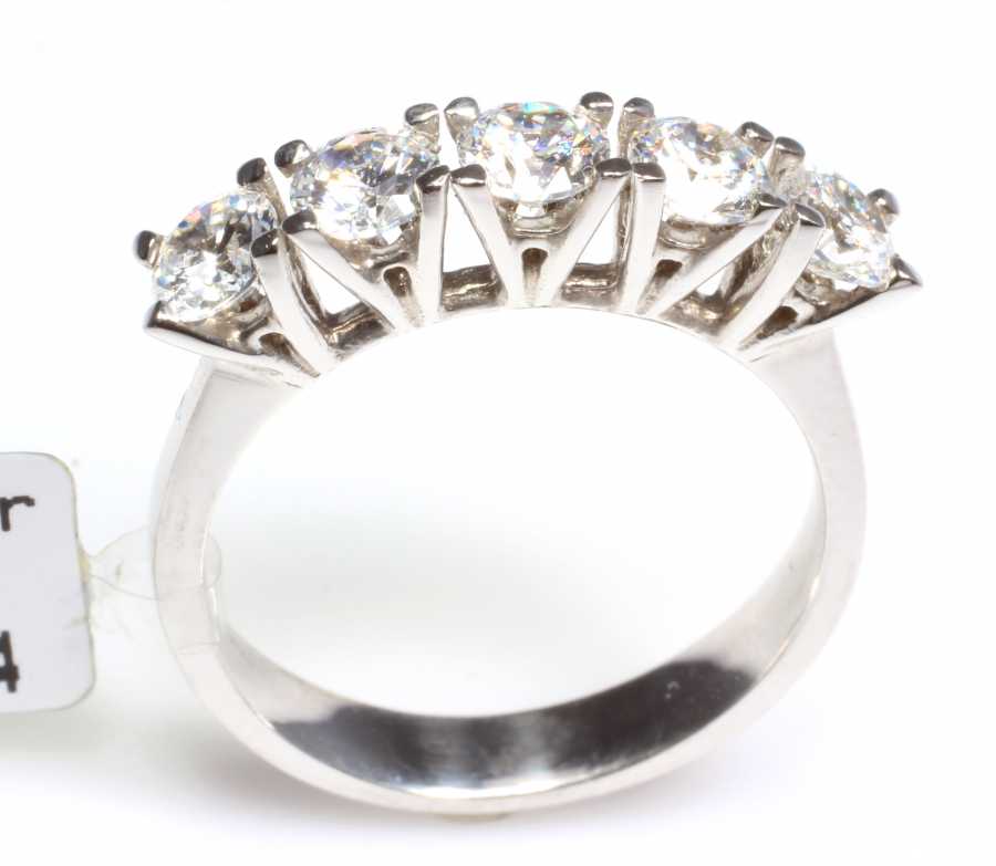 Beştaş yüzük 18 ayar altın madeninden üretilmiştir. Yüzük üzerinde 5 adet 0,40 karat ağırlığında E renk SI berraklığında beyaz pırlanta taş mevcuttur. Sertifika için bizimle iletişime geçebilirsiniz.
