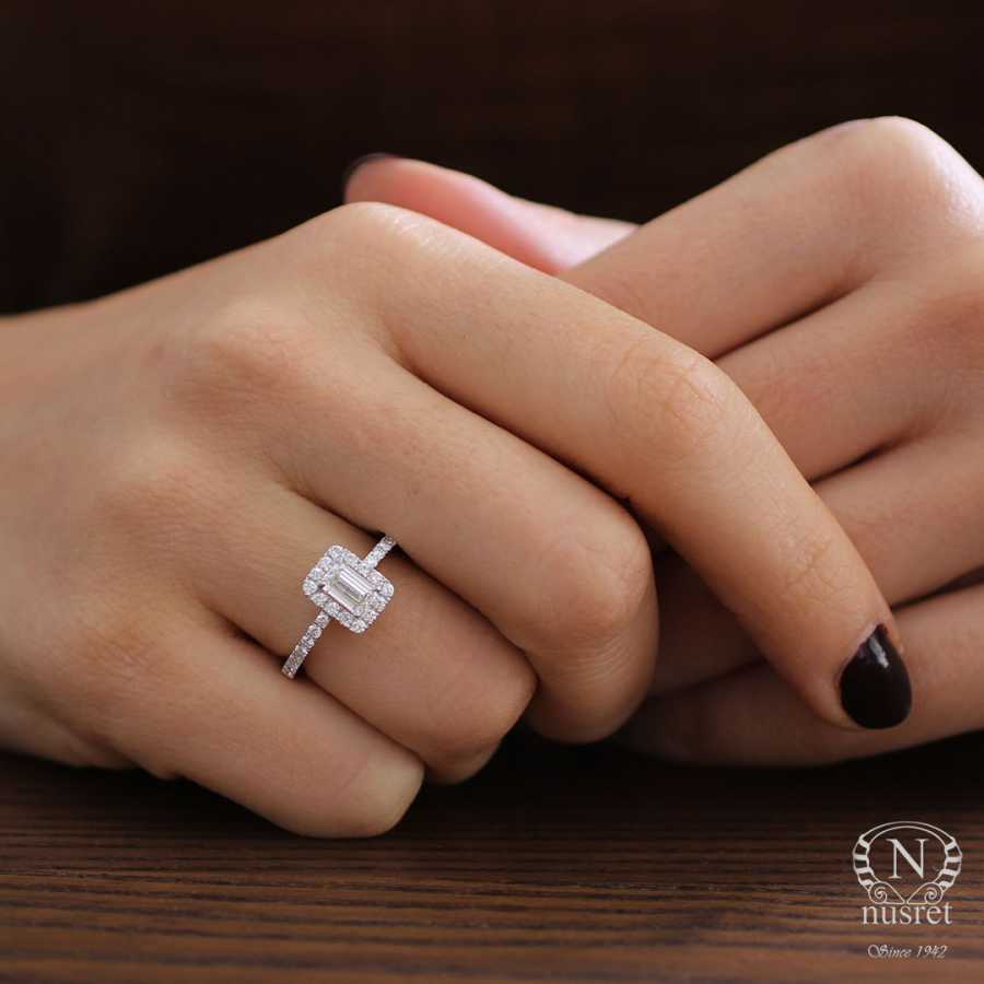 Tasarım baget yüzük 18 ayar altın madeninden üretilmiştir. Yüzük üzerinde 1,75 karat ağırlığında - renk - berraklığında beyaz pırlanta taş mevcuttur. Baget taşlı yüzük 4 gram ağırlığındadır. Sertifika için bizimle iletişime geçebilirsiniz.