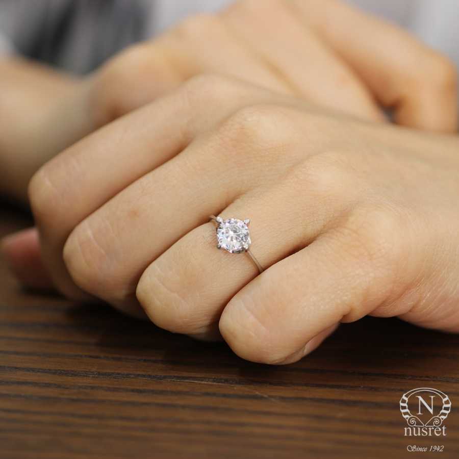 Tektaş yüzük 18 ayar altın madeninden üretilmiştir. Yüzük üzerinde 1 adet 1,00 karat ağırlığında F renk VS2 berraklığında beyaz pırlanta taş mevcuttur. Sertifika için bizimle iletişime geçebilirsiniz.