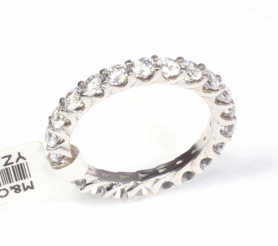 Tamtur yüzük 18 ayar altın madeninden üretilmiştir. Yüzük üzerinde 22 adet 2,00 karat ağırlığında F renk SI berraklığında beyaz pırlanta taş mevcuttur. Tam tur yüzük 3,26 gram ağırlığındadır. Sertifika için bizimle iletişime geçebilirsiniz.
