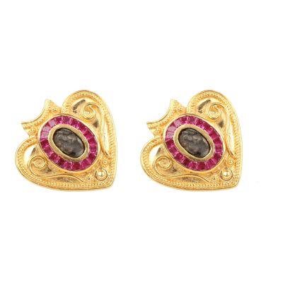 22 Ayar altındır. 22 mm kalpli yakut taşlı Elizabeth figürlü küpe. Gramı: 11,29 gr