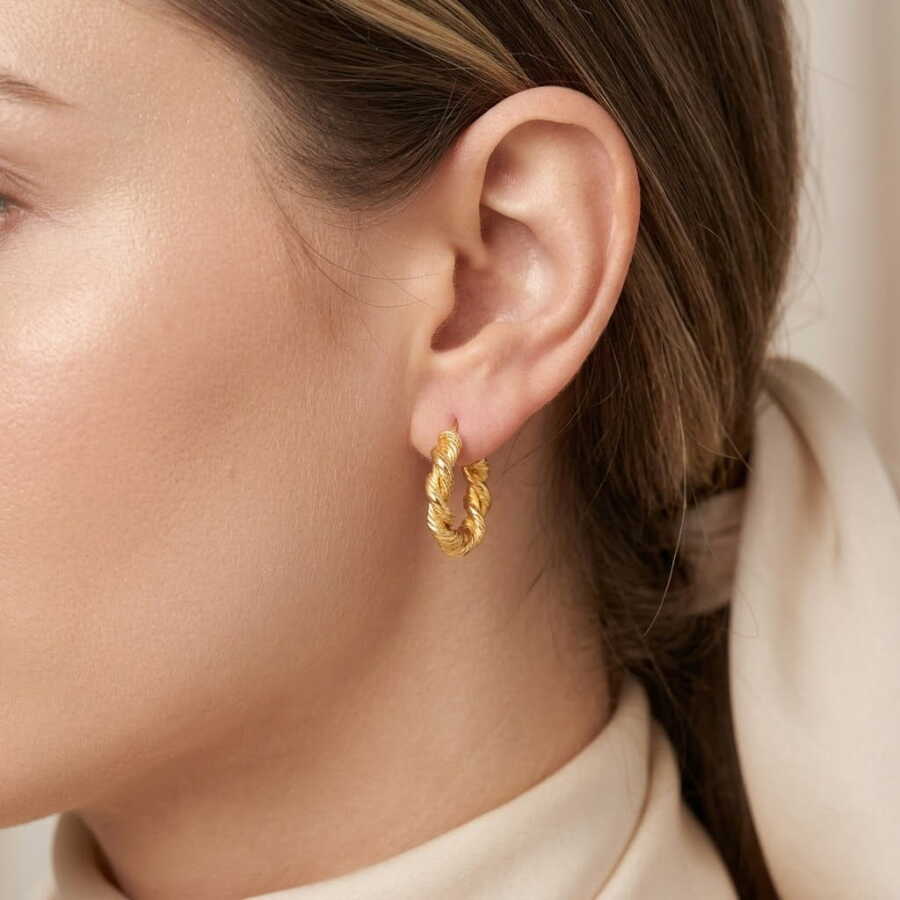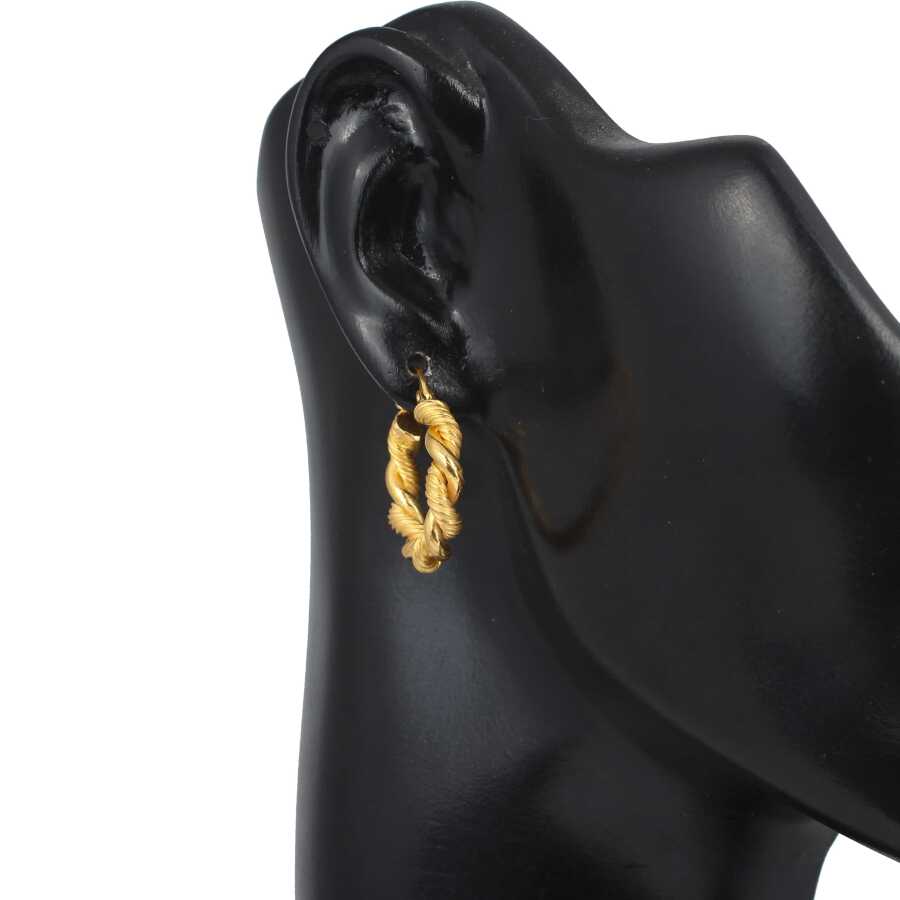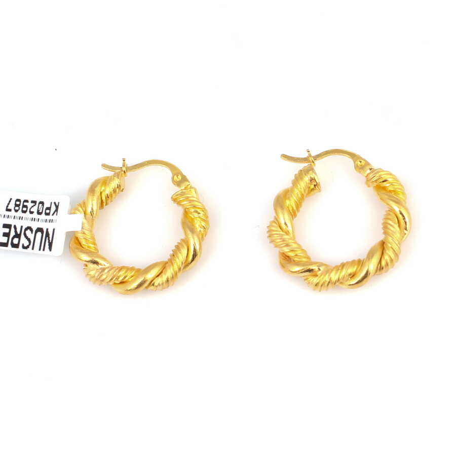 Altın küpe 22 ayar altından üretilmiştir. Halka şeklinde burgu küpe 2,3 cm boyutlarındadır. Burgu Küpe taşsızdır. Ağırlığı 5,5 gramdır.