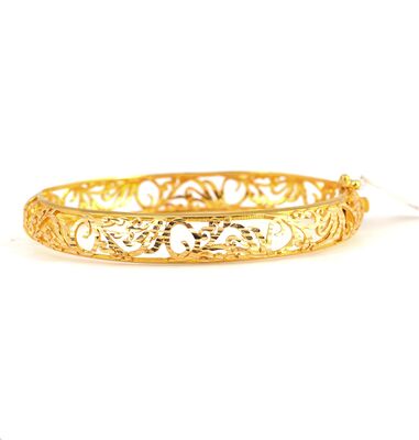 Bilezik 22 ayar altından imal edilmiştir. El işi ajur desenli bilezik 6 cm çapındadır. Bilezik 1 cm enindedir. Bilezik taşsızdır. Bilezik tamamen elişidir. 22 ayar altın bilezik kilitlidir. Bilezik üzerine kalem atılmıştır. Bilezik 24,62 gram ağırlığındadır.