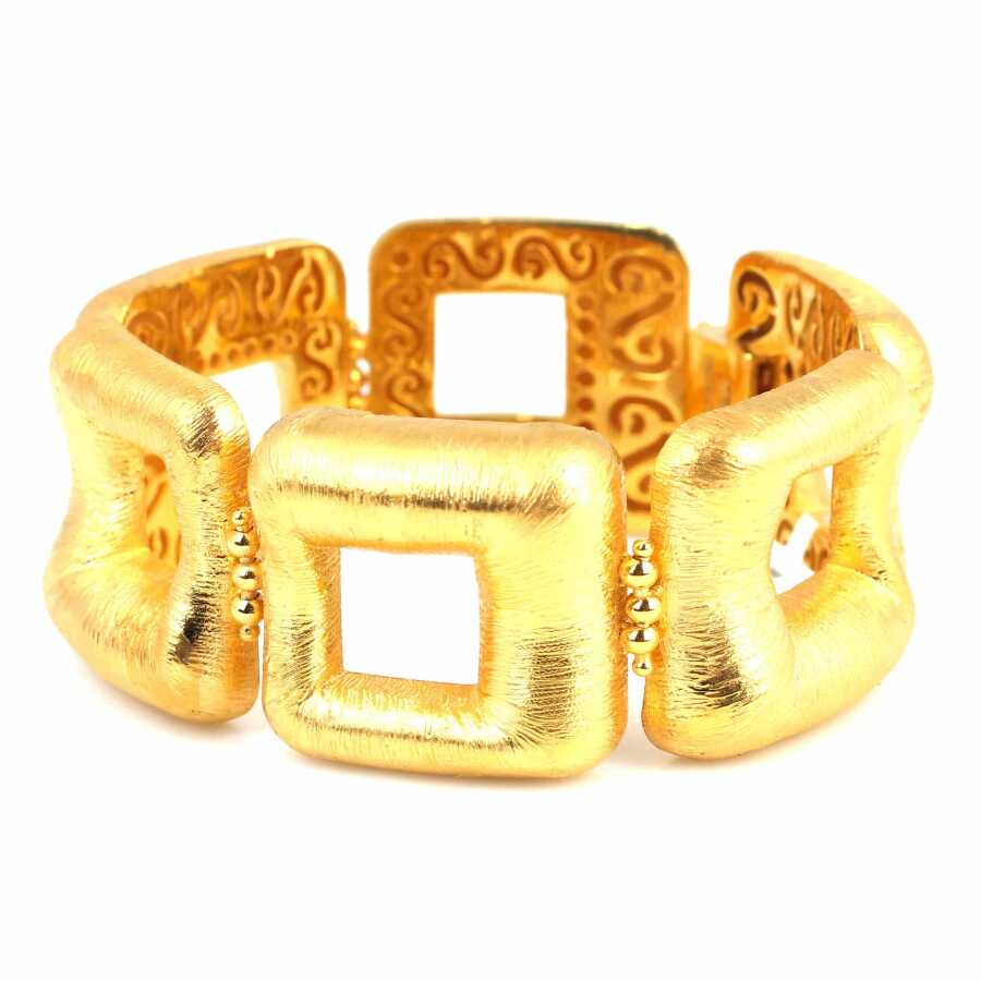 Bileklik 22 ayar altından imal edilmiştir. Bileklik 22 cm uzunluğundadır. Bileklik taşsızdır. Bileklik 2.7 cm kalınlığındadır. Altın bileklik 67,14 gramdır.
