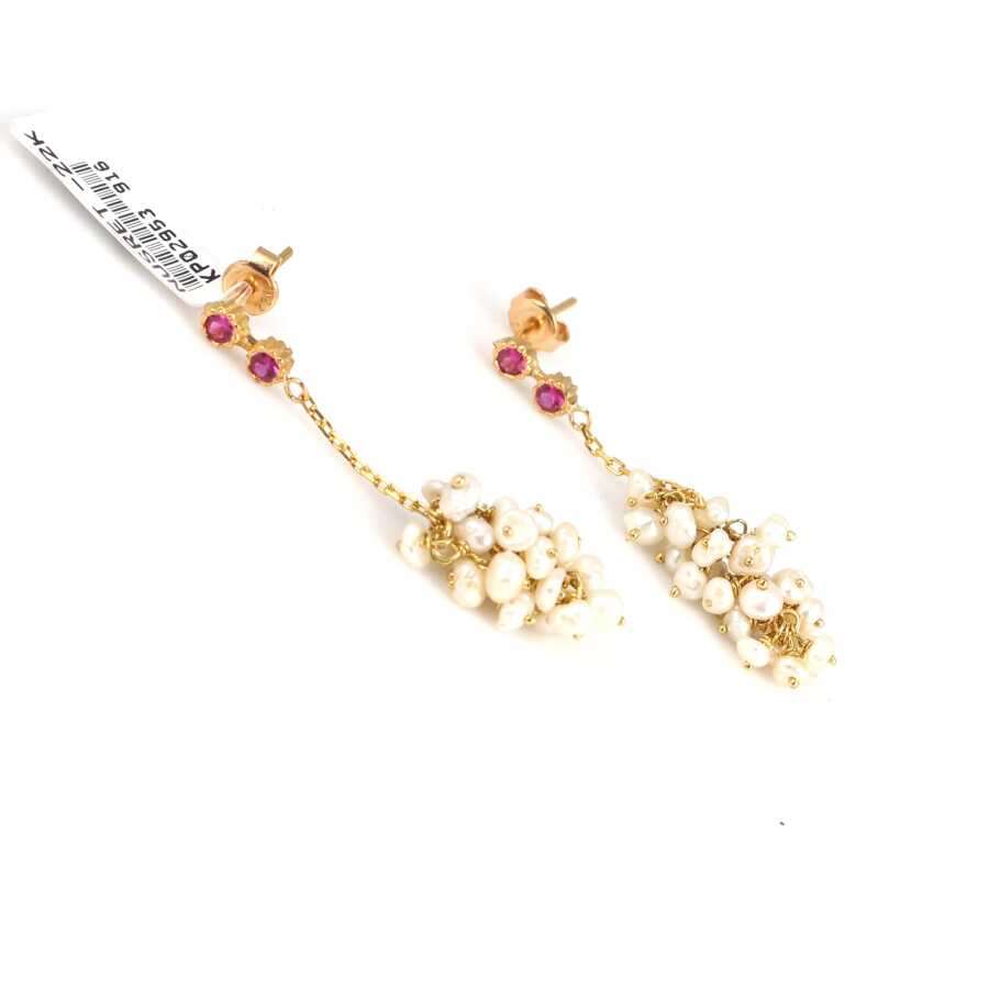 22 Ayar Altın İnci Salkımı Sallantılı Küpe