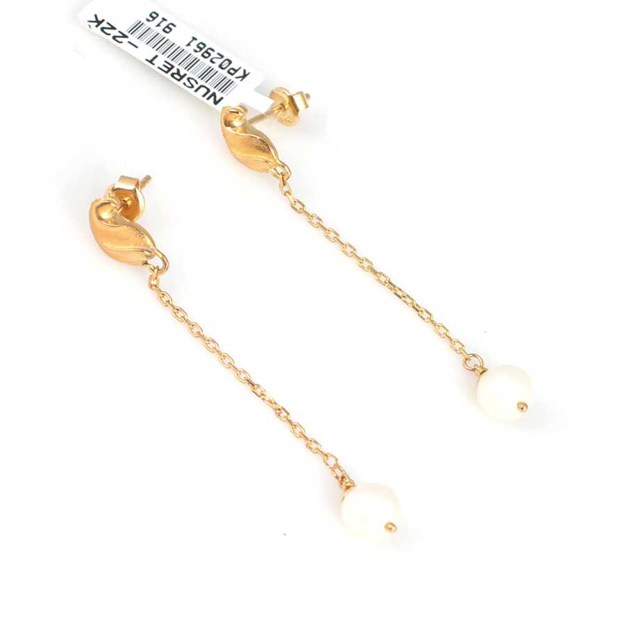 Altın küpe 22 ayar altından üretilmiştir. Küpe 5,0 cm'ye 0,7 cm boyutlarındadır. Çivi şeklinde küpe inci taşlıdır Ağırlığı 3,44 gramdır.
