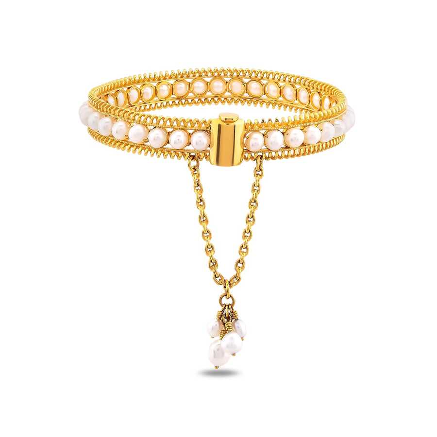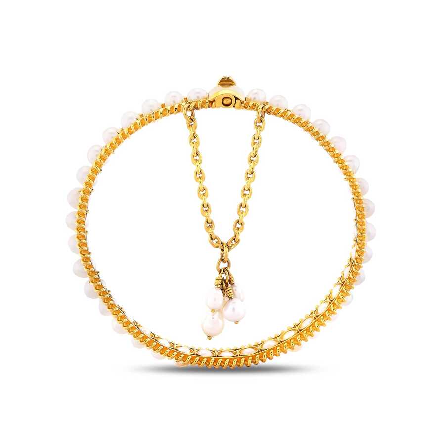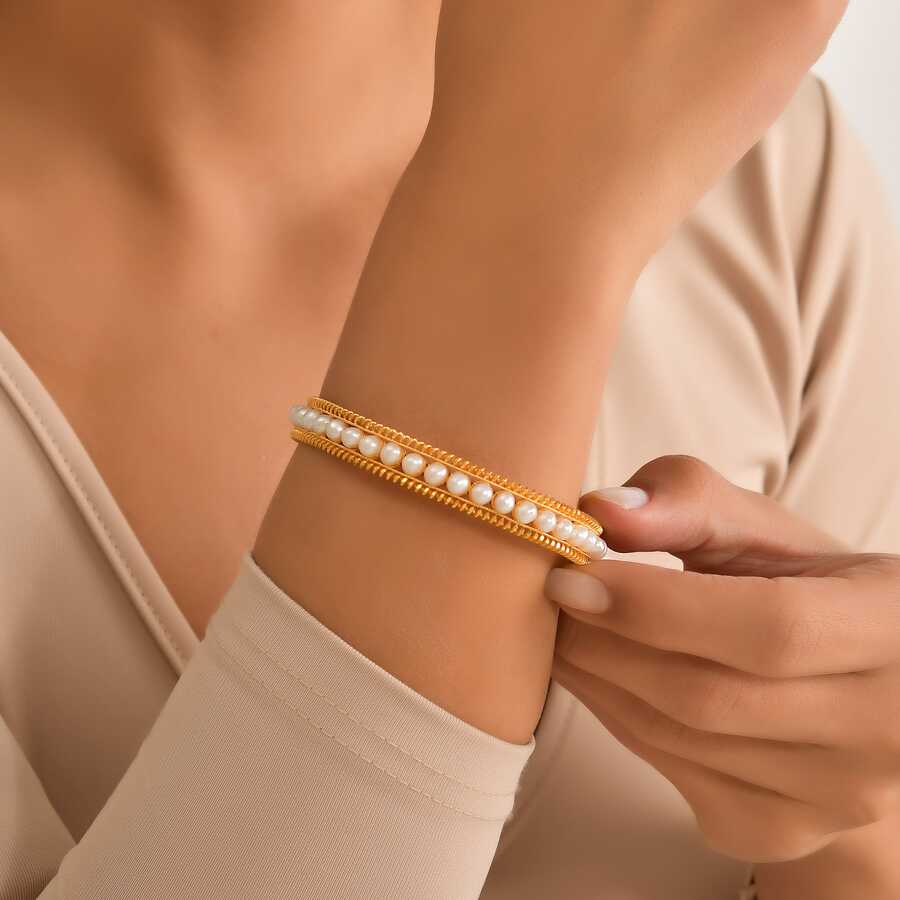 Bilezik 22 ayar altından imal edilmiştir. Tek sıra bilezik 5,5 cm çapındadır. Bilezik 1 cm enindedir. Bilezik inci taşlıdır. Bilezik 26,8 gram ağırlığındadır.