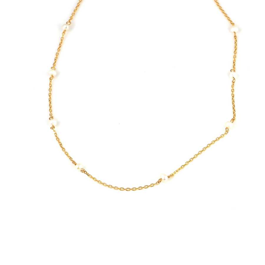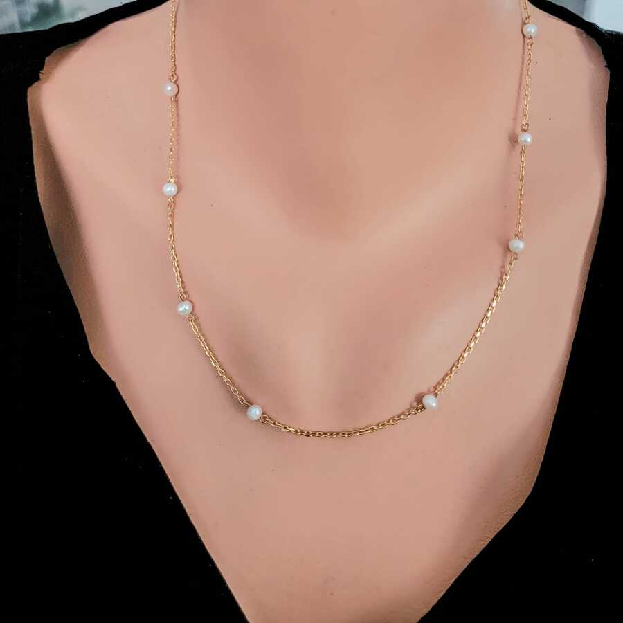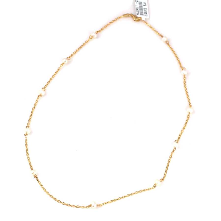 Altın kolye 22 ayar altından üretilmiştir. İnci taşlı zincir kolye 45 cm uzunluğundadır. Zincir kolye 0,5 cm kalınlığındadır. Kolye inci taşlıdır. Ağırlığı 6,8 gramdır.
