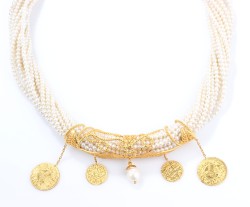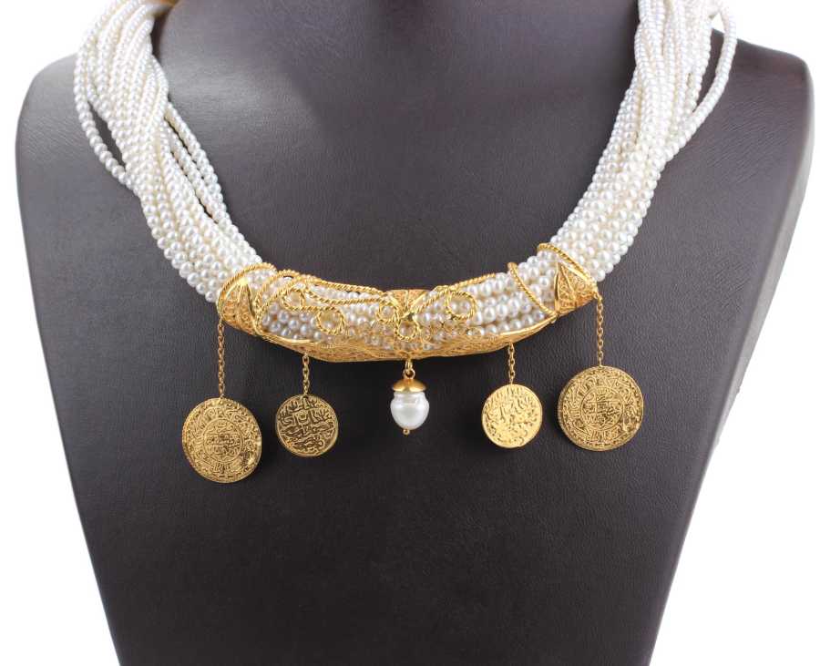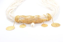 22 Ayar Altın İncili Paralı Telkâri Kolye