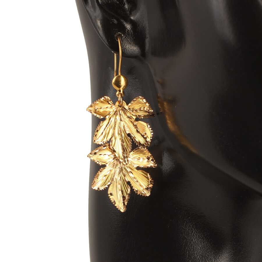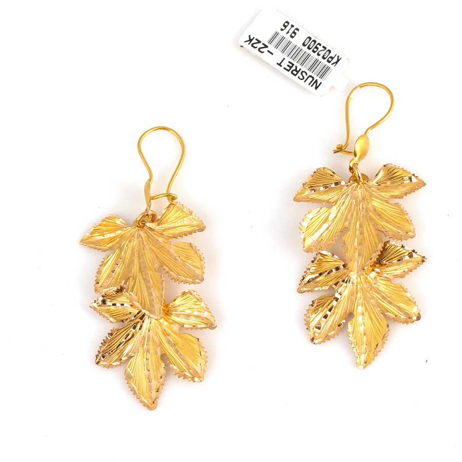 22 Ayar Altın Kalemli Asma Yaprağı Küpe