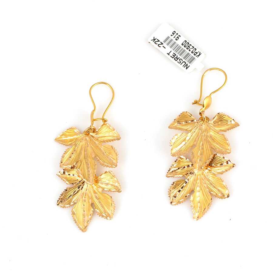 Altın küpe 22 ayar altından üretilmiştir. Sallantılı asma yaprağı model küpe 6,0 cm'ye 2,5 cm boyutlarındadır. Asma yaprağı model küpenin üzerine el kalemi atılmış ve taşsızdır. Ağırlığı 11,81 gramdır.