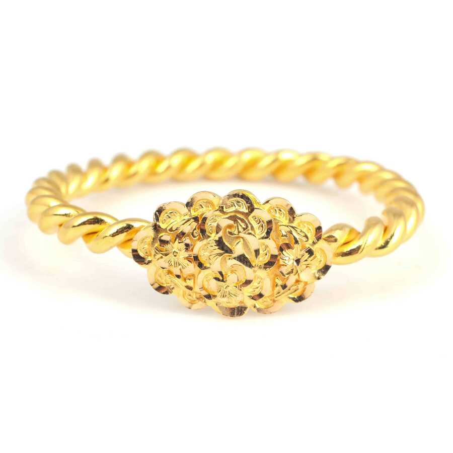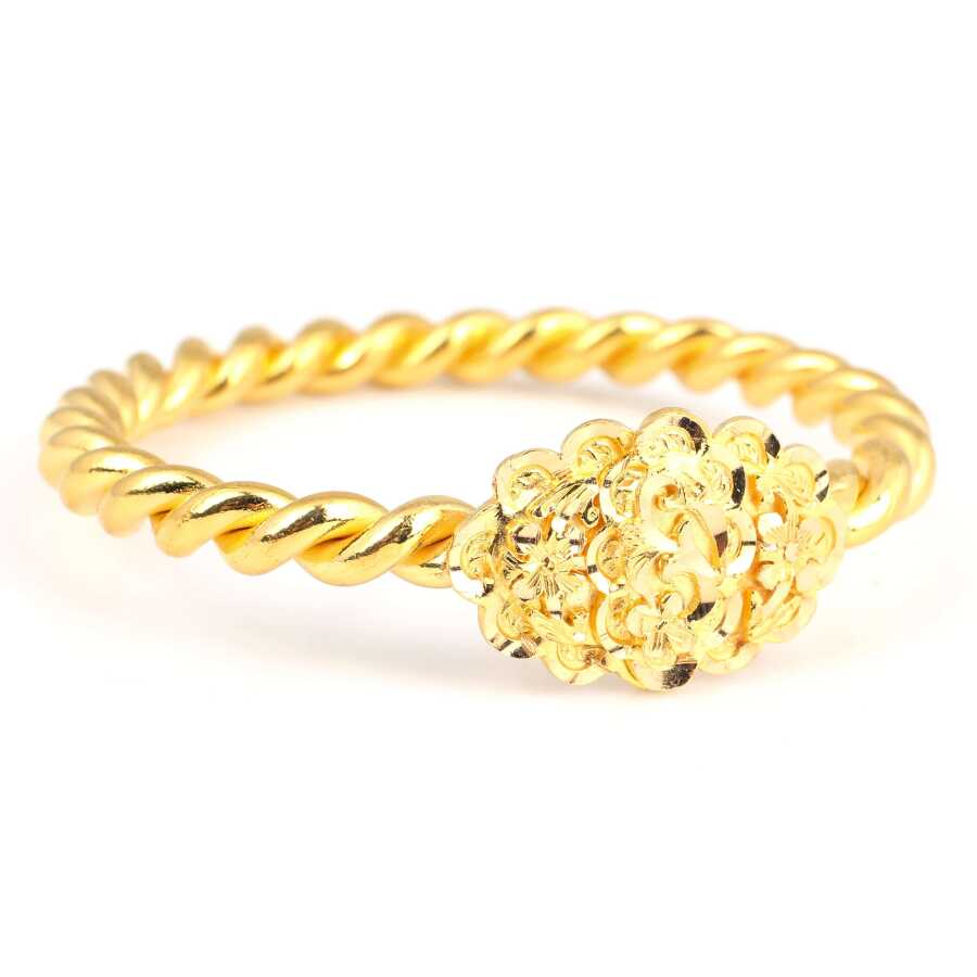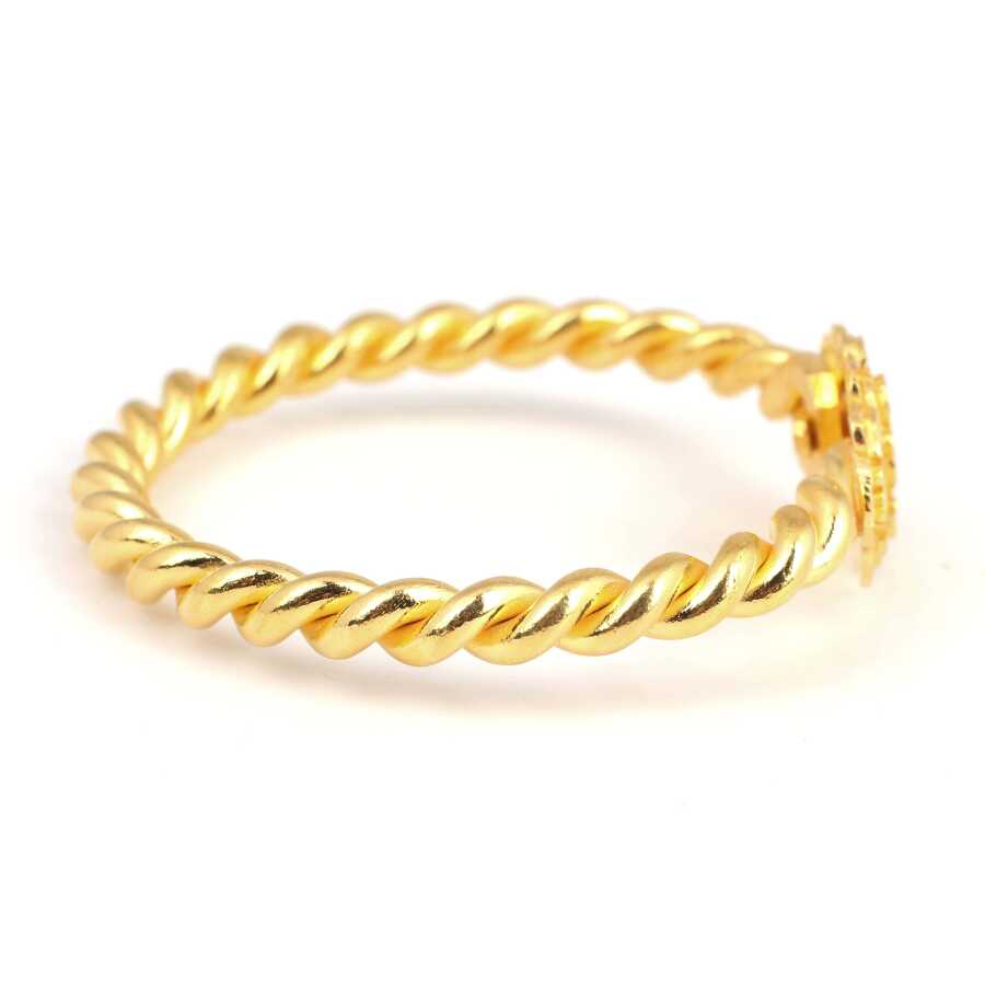 Bilezik 22 ayar altından imal edilmiştir. Kalemli papatya kaşlı iki tel Erzurum burma bilezik 6 cm çapındadır. Ağırlığı 100,2 gramdır.