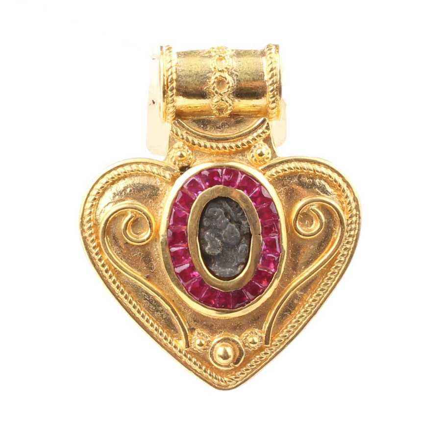 22 ayar yakut taşlı ortası Elizabeth kafası figürlü elişi kalpli kolye ucu Gramı: 9,45 gr