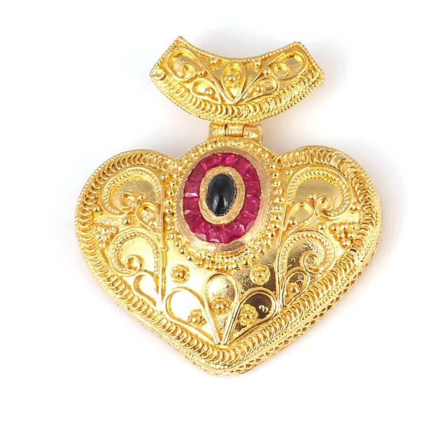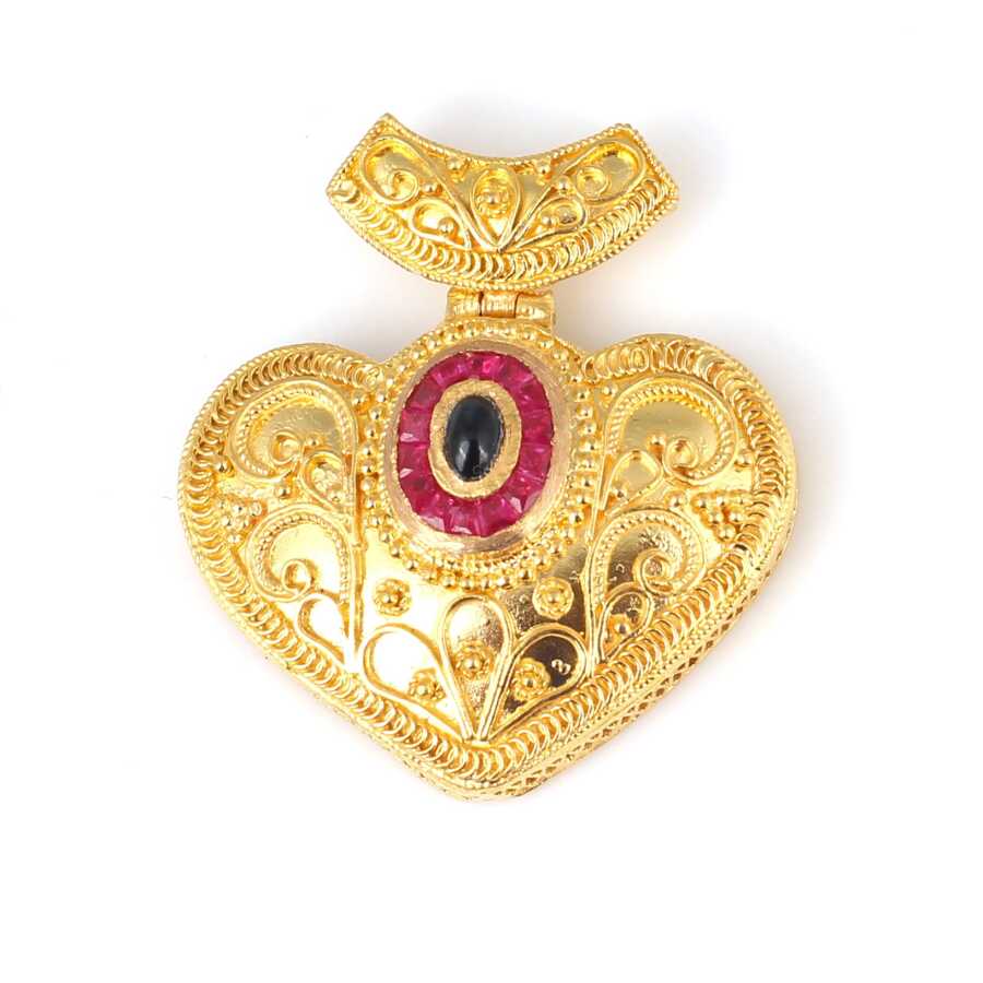 22 Ayar Altın Kalp Yakut Ve Safir Taşlı Antik Kolye Ucu