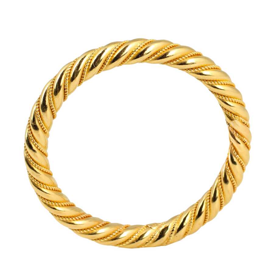 Bilezik 22 ayar altından imal edilmiştir. Kilitsiz koç kolu model bilezik 5,8 cm çapındadır. Bilezik kilitsiz ve taşsızdır. Ağırlığı 45 gramdır.