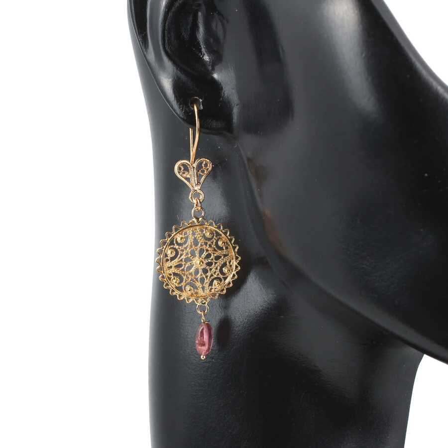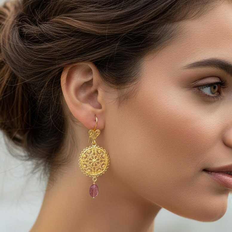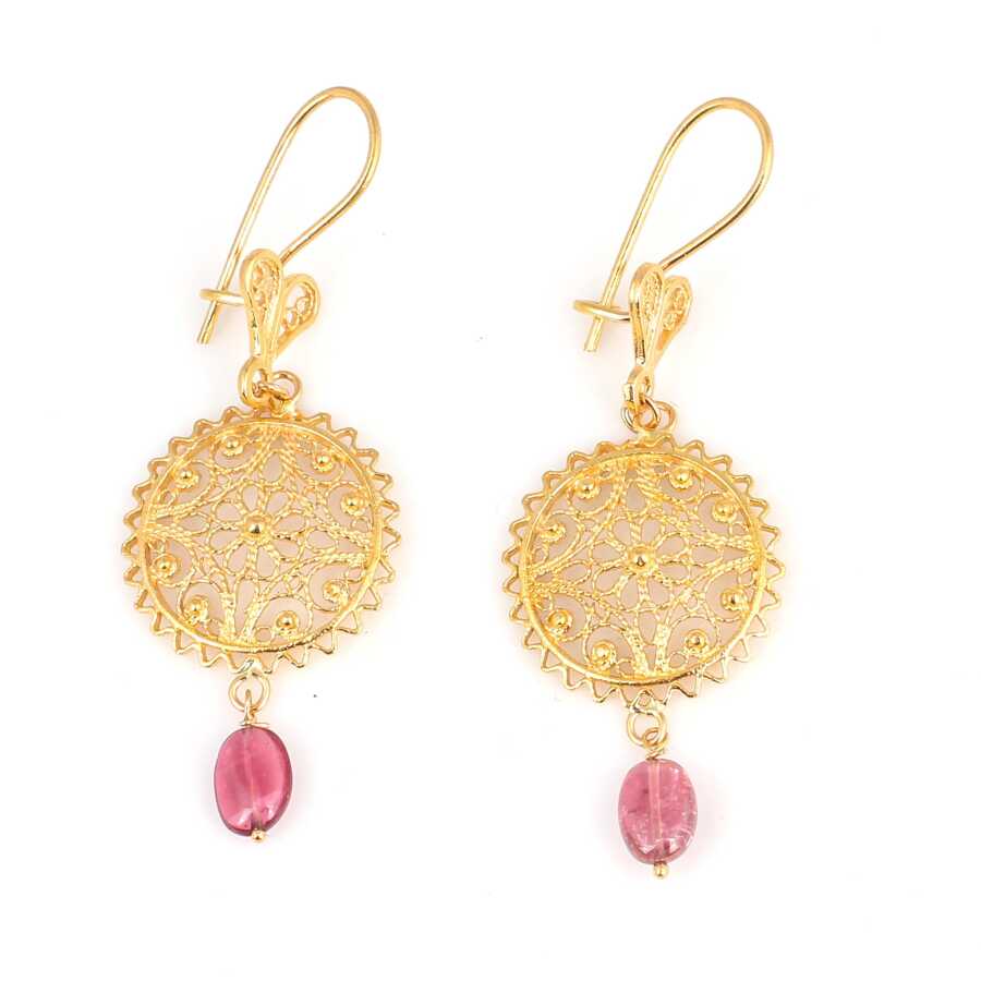 22 Ayar Altın Kubbe Motifli Yakut Sallantılı Telkari Küpe