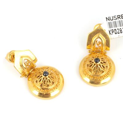 22 ayar altındır. Altın küpe kubbe şeklindedir. Küpenin üst kısmında oniks taşı vardır. Küpenin boyutu: 3,0 X 1,6 cm'dir. Gramı: 15,52 gr