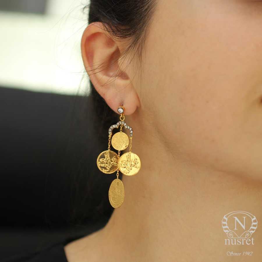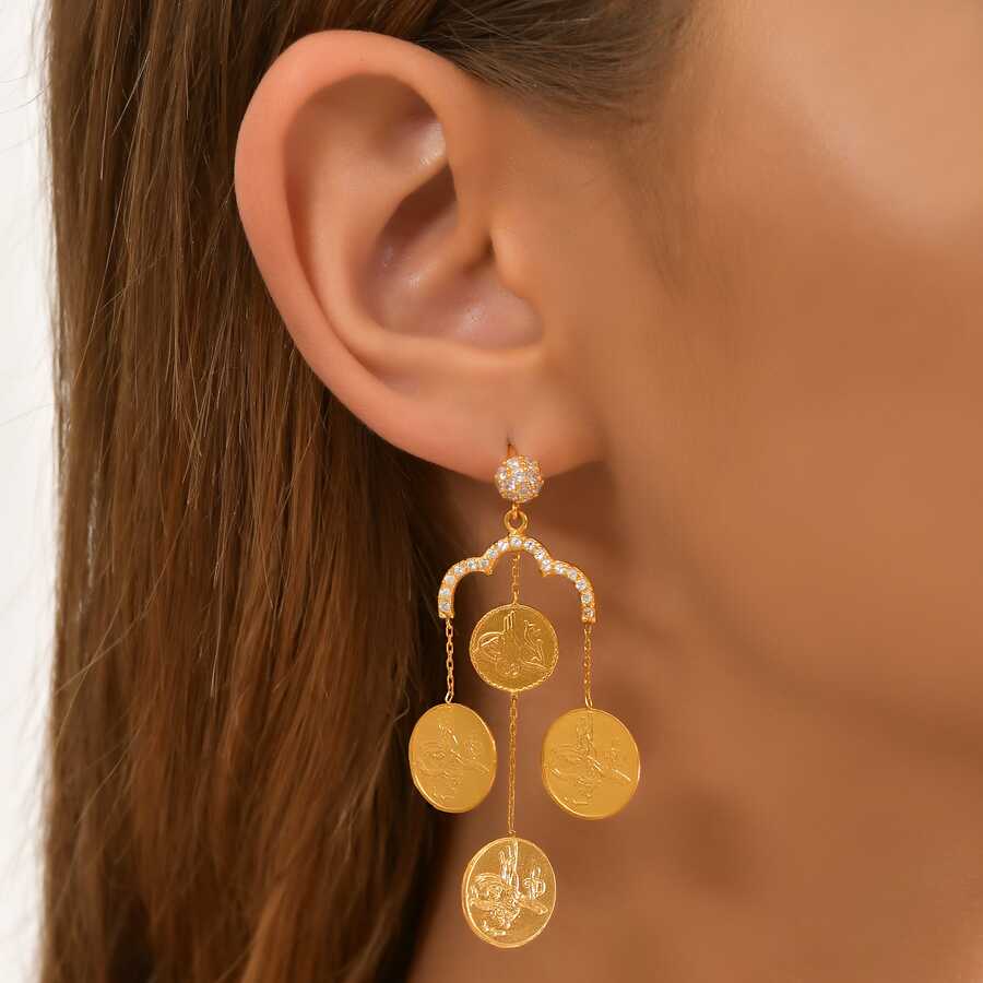 22 Ayar Altın Mahmudiye Paralı Avize Küpe