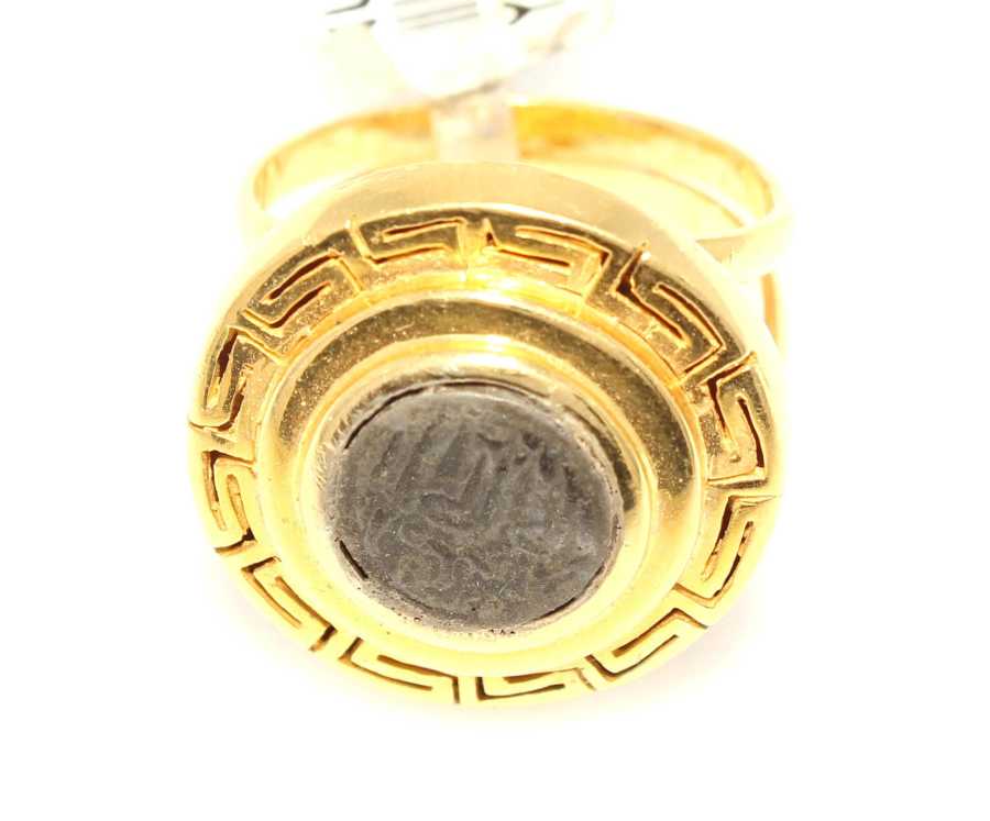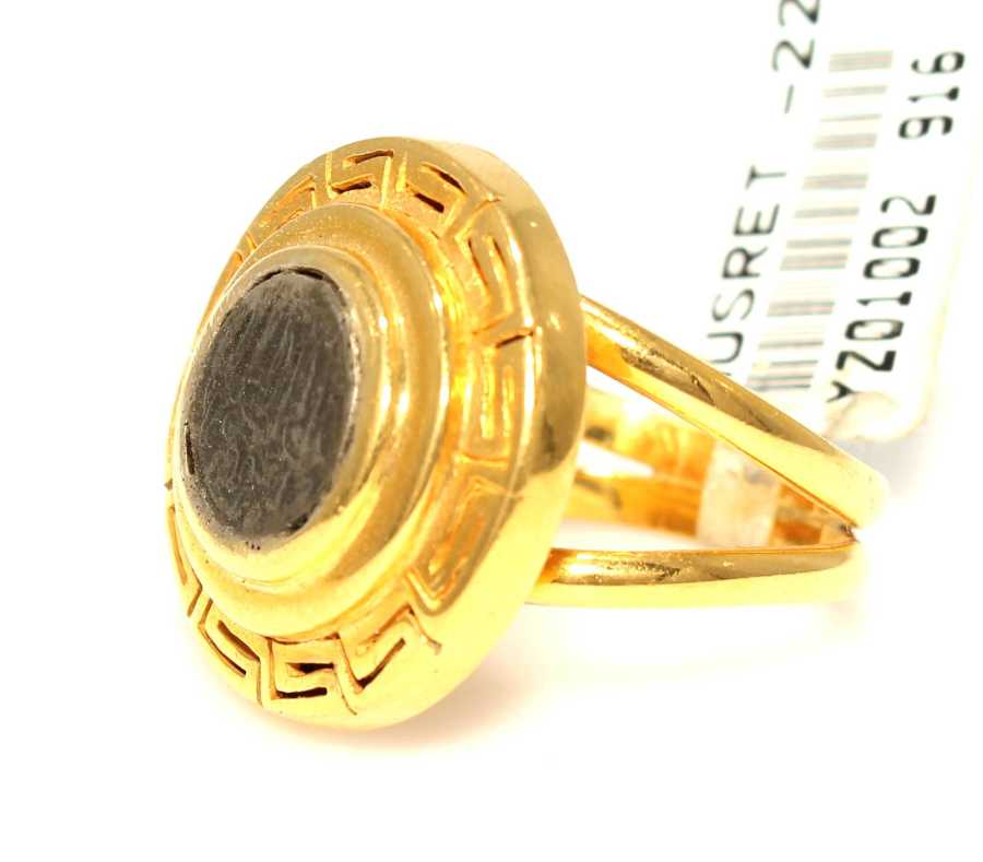 Yüzük 22 ayar altından üretilmiştir. Grek model yüzük 13 ölçüdür. Tüm ölçüler yapılabilmektedir. Yüzüğün üst kısmında maşallah ve grek desenlidir. Yüzüğün üst kısmı 1,9 cm boyutlarındadır. Yüzüğün ortası 0,45 gram gümüştür. Yüzük taşsızdır. Ağırlığı 9,4 gramdır.