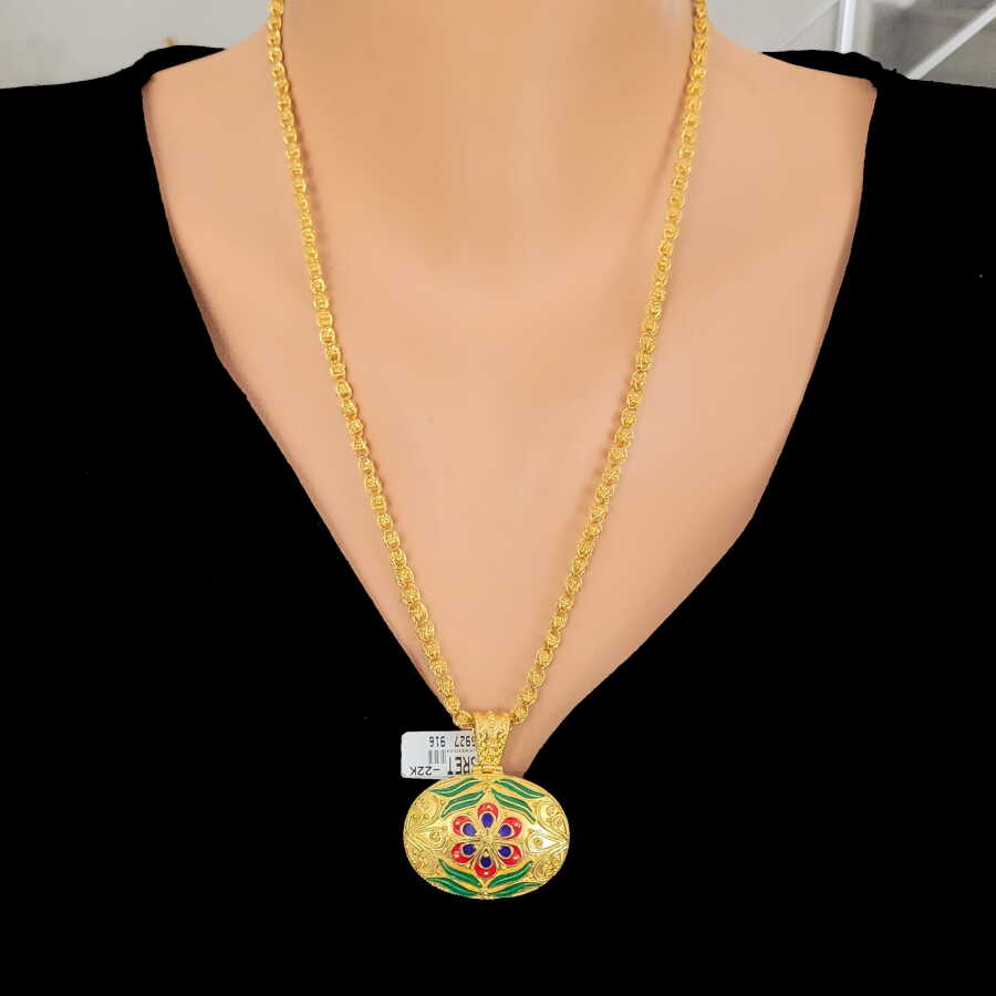 Kolye ucu 22 ayar altındır. Zincir dahil değildir. Mineli Papatya kolye ucunun uzunluğu tepelik dahil 4 cm ve genişliği ise 3,7 cm boyutlarındadır. El işi kolye ucu mineli ve taşsızdır.