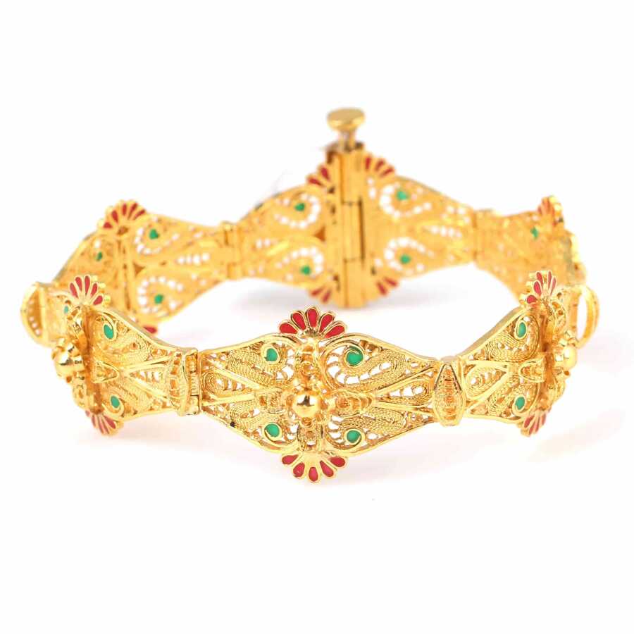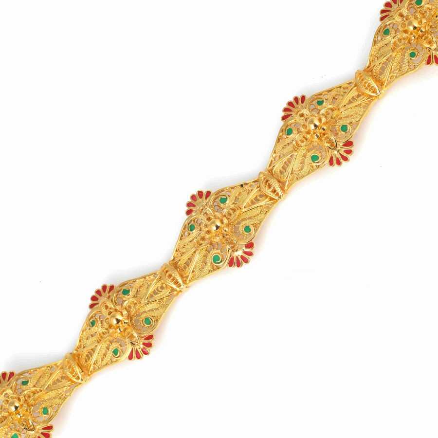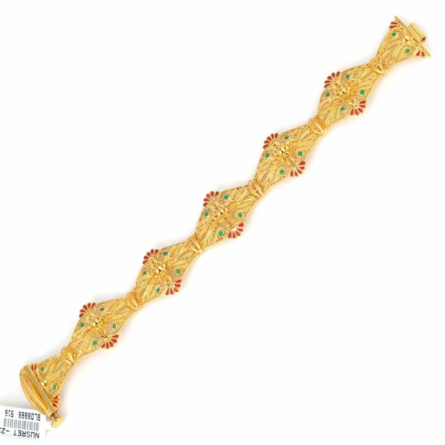 Bileklik 22 ayar altından imal edilmiştir. Telkari model bileklik 18 cm uzunluğundadır. Bileklik 2 cm enindedir. Bileklik mineli ve taşsızdır. Ağırlığı 37,54 gramdır.