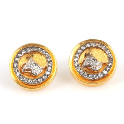 22 ayar altın osmanlı tuğralı küpenin kenarlarında zirkon taşlar vardır. Küpenin boyutu 1,5 cm'dir. Gramı: 8 gr