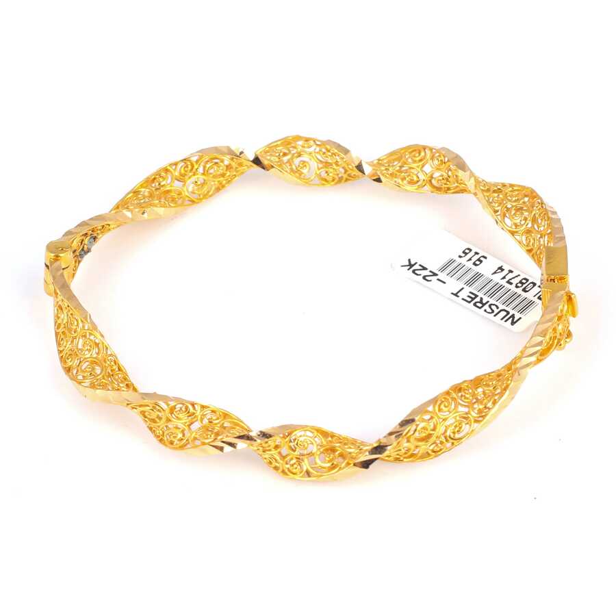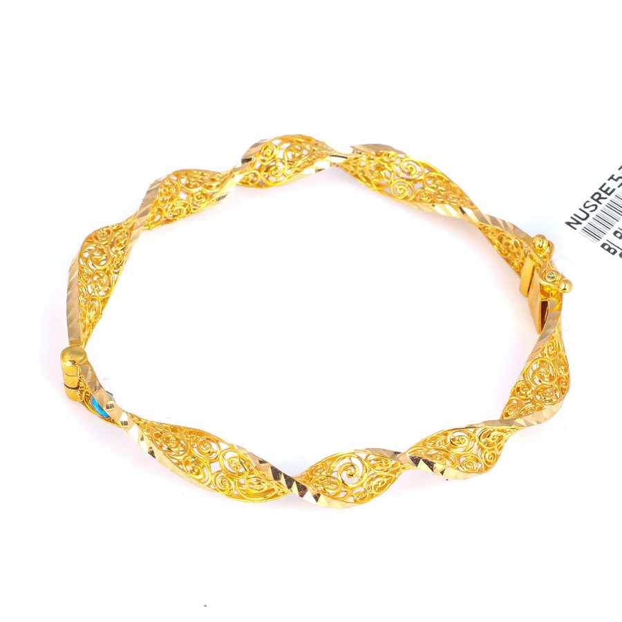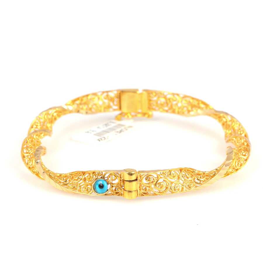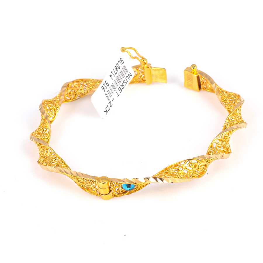 Bilezik 22 ayar altından imal edilmiştir. Füzyon model bilezik 6,2 cm'ye 5,1 cm çapındadır. Bilezik 0,7 cm enindedir. Bilezik taşsızdır. Bilezik üzerinde göz boncuğu vardır. Bilezik 13,2 gram ağırlığındadır.