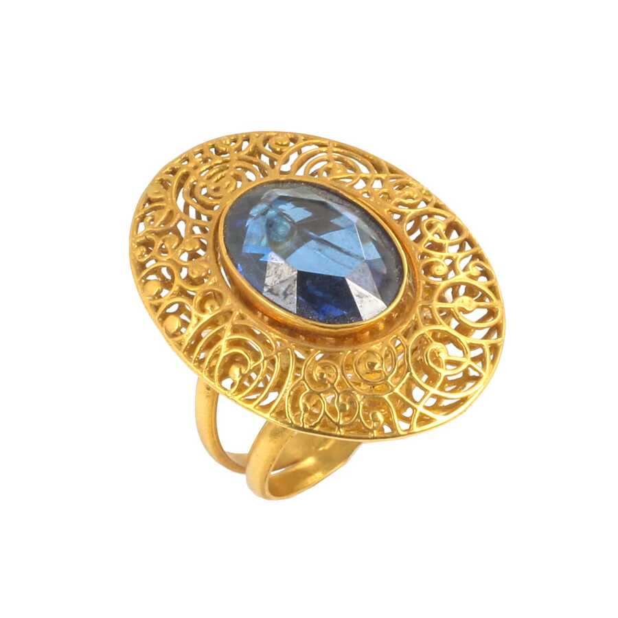 22 Ayar Altın Oval Safir Taşlı Yüzük