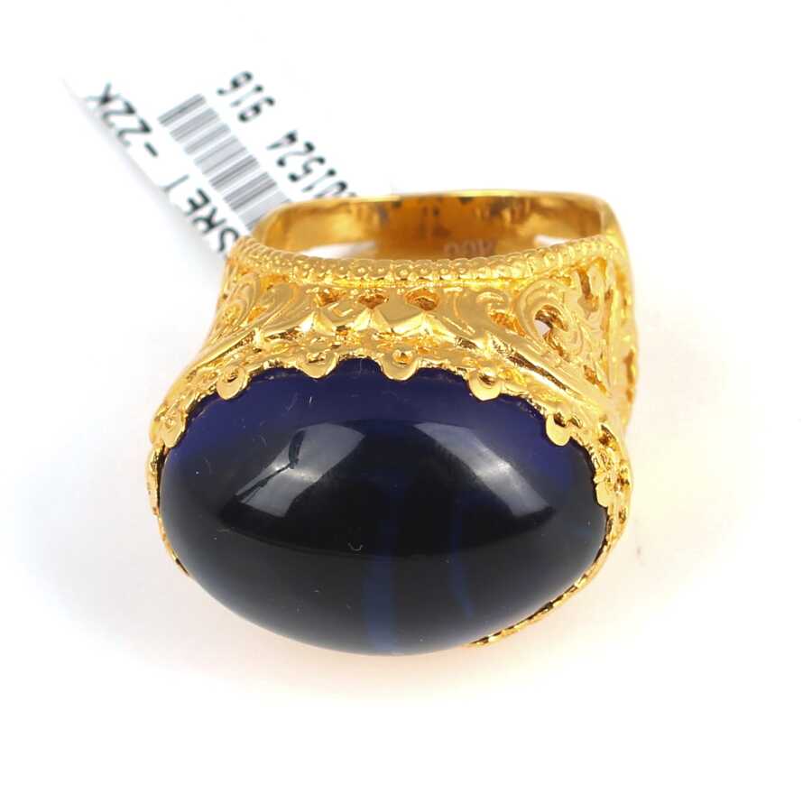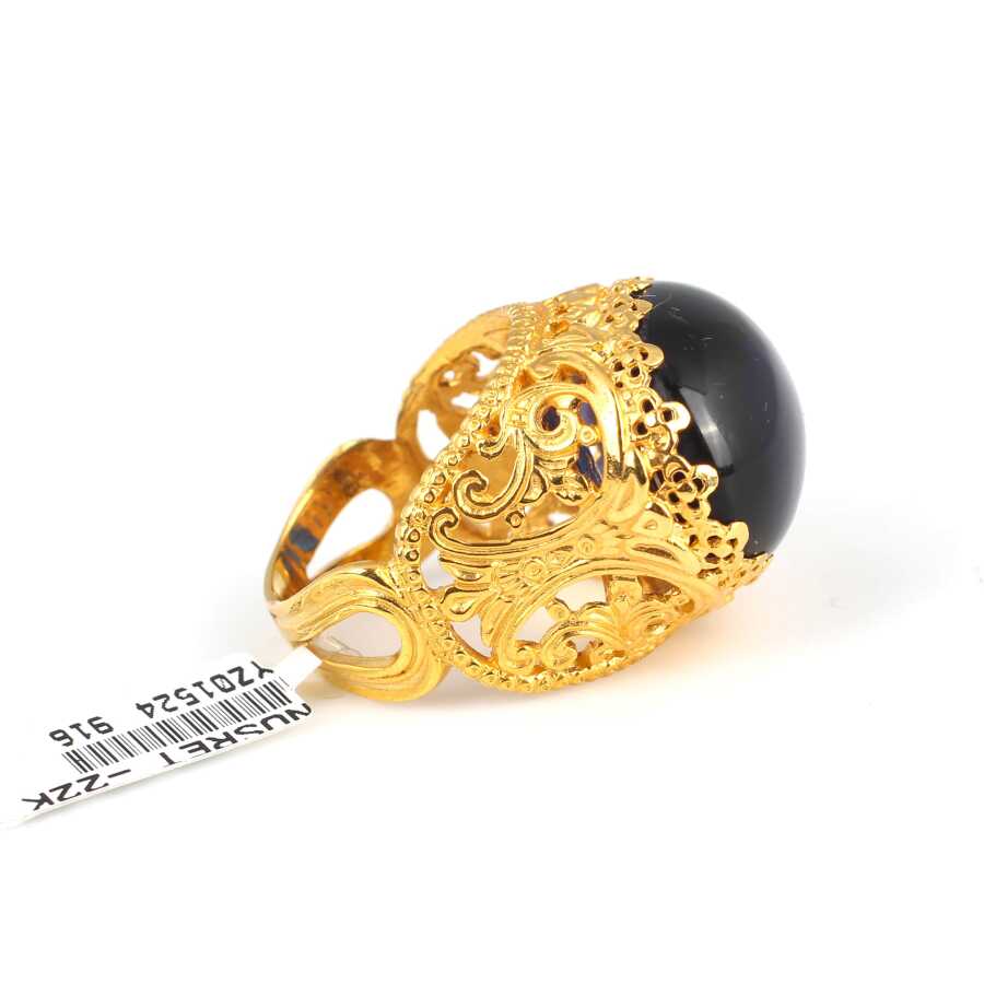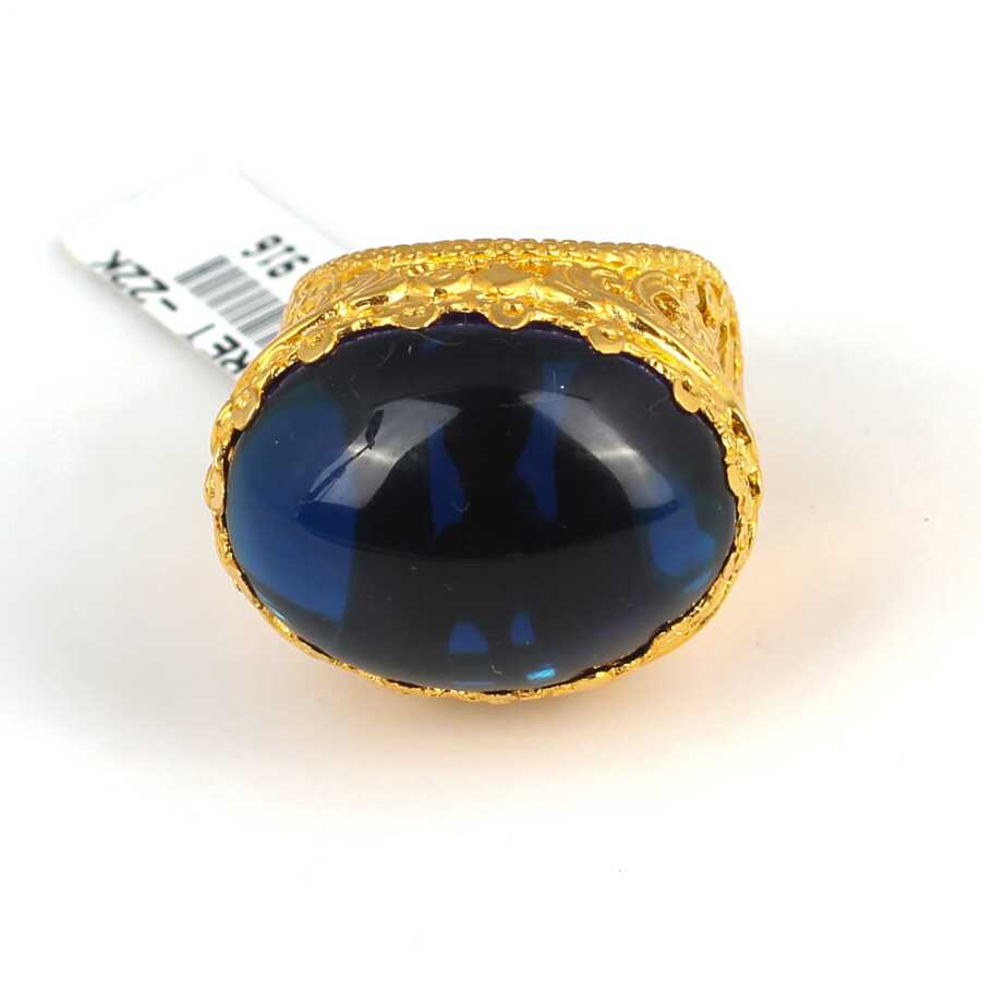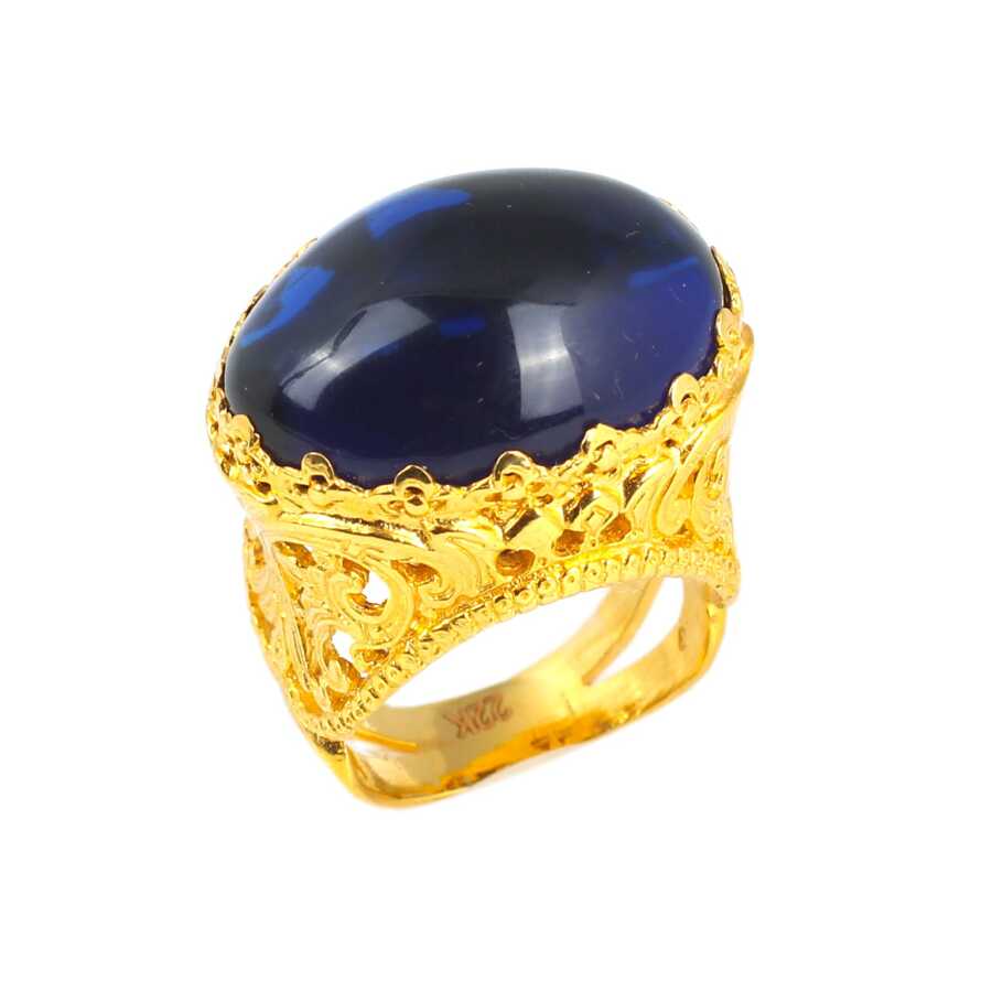 Yüzük 22 ayar altından üretilmiştir. Antik motifli yüzük 19 ölçüdür. Tüm ölçüler yapılabilmektedir. Yüzüğün üst kısmı 2,5 cm'ye 2,0 cm boyutlarındadır. Yüzük sentetik safir taşlıdır. Ağırlığı 24,41 gramdır.