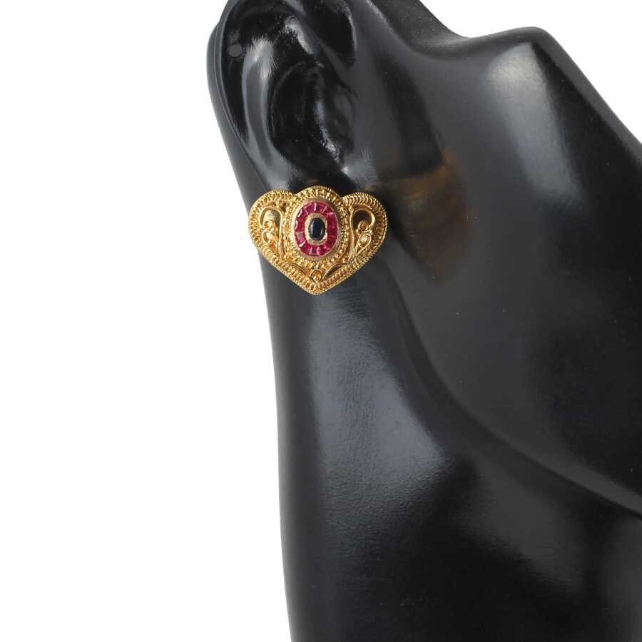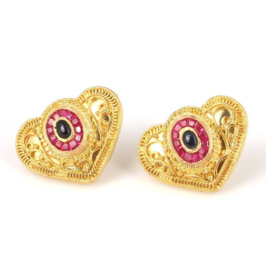 22 Ayar Altın Safir Ve Yakut Taşlı Antik Kalp Küpe