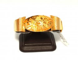 Bilezik 22 ayar altından imal edilmiştir. Saksı model bilezik 6,2 cm çapındadır. Bilezik 2,4 cm enindedir. Oval parçanın iç kısmında çiçekler ve yaprak figürleri eklenerek tasarlanmıştır. Bilezik signty zirkon taşlıdır. Bilezik 30,26 gram ağırlığındadır.