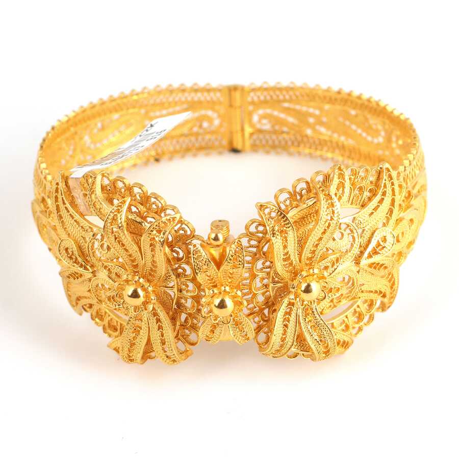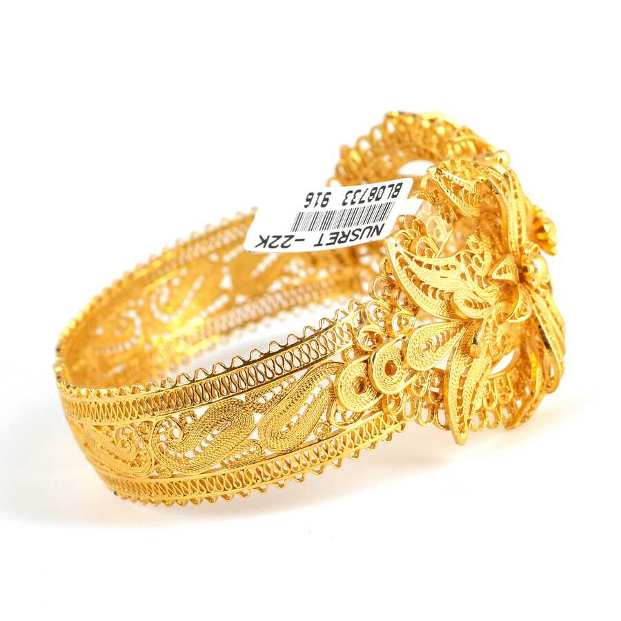 Bilezik 22 ayar altından imal edilmiştir. Telkari kobra model bilezik 6,5 cm çapındadır. Bilezik 3,5 cm enindedir. Bilezik taşsızdır. Bilezik 56,62 gram ağırlığındadır.