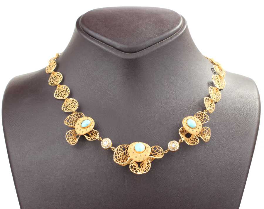 22 Ayar Altın Turkuaz Taşlı Füzyon Kolye