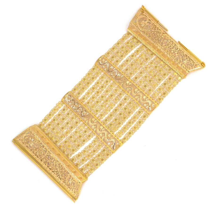 Bileklik 22 ayar altından imal edilmiştir. Bileklik 12 sıralı ve 20 cm uzunluğundadır. Bileklik taşsızdır. Bileklik 9 cm kalınlığındadır. Kalem atılmıştır. Altın bileklik el işidir.