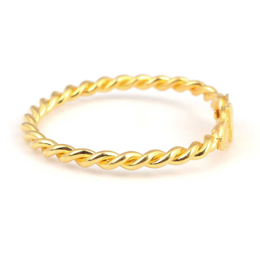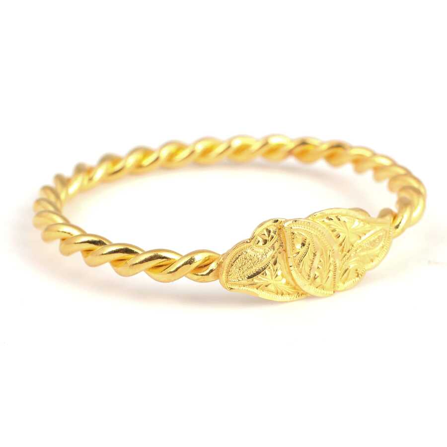Bilezik 22 ayar altından imal edilmiştir. Yaprak kaş Erzurum burma bilezik 6,0 cm çapındadır. Çift tel burma bilezik Ağırlığı 55,2 gramdır.