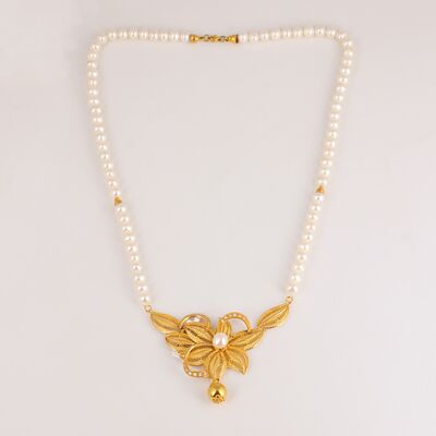 Gelince Haber Ver Altın kolye 22 ayar altından üretilmiştir. Telkari yaprak model kolye 52 cm uzunluğundadır. Kolye ucu 8 cm'ye 7 cm boyutlarındadır. Kolye inci ve zirkon taşlıdır. Ağırlığı 27,63 gramdır. Verilen gramlar yaklaşıktır, değişebilir.