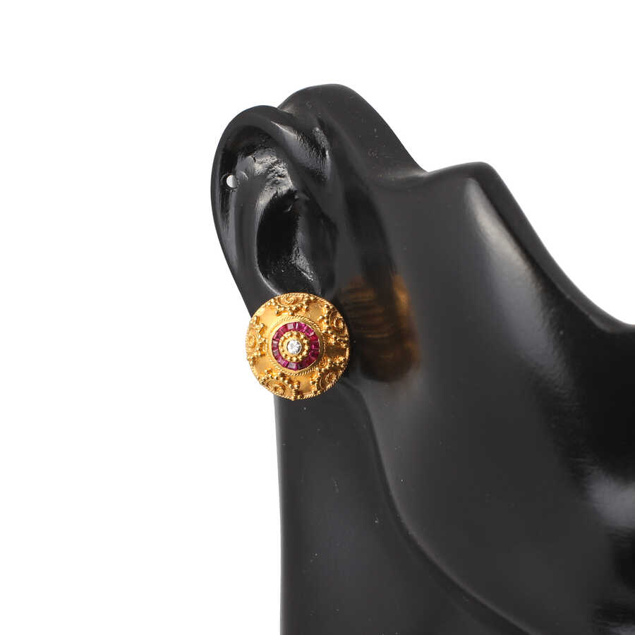 22 Ayar Altın Yuvarlak Pırlanta Taşlı Antik Küpe