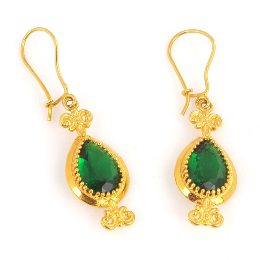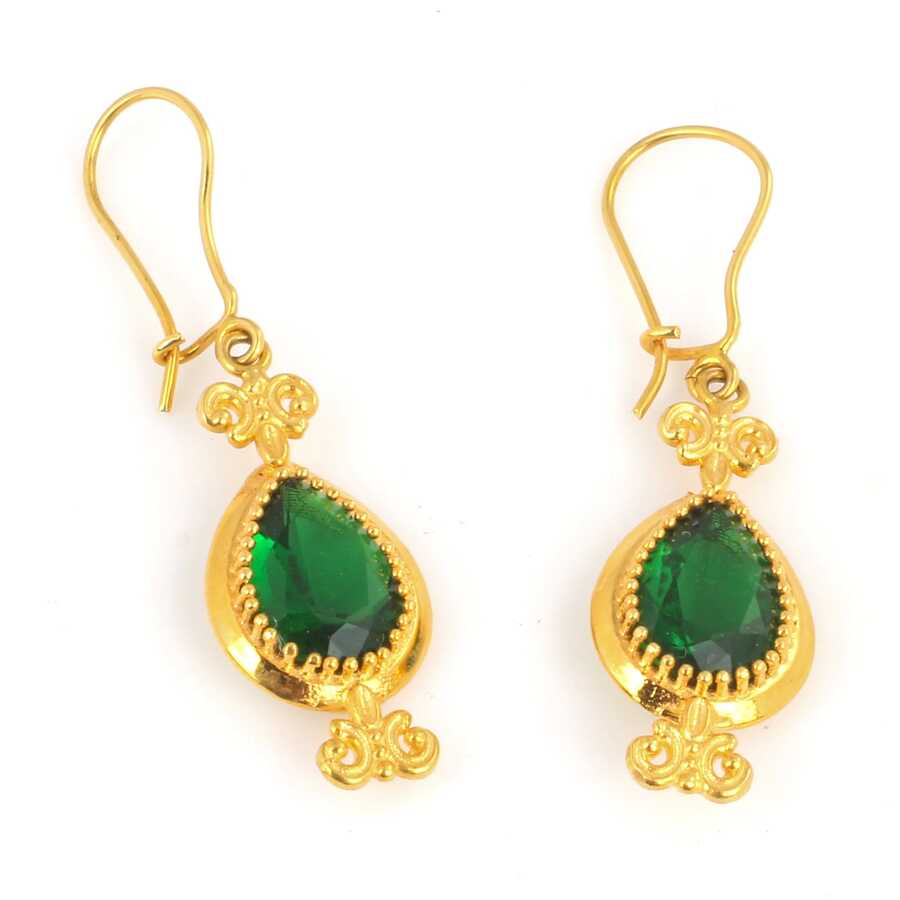 22 Ayar Altın Zümrüt Taşlı Konstantin Küpe