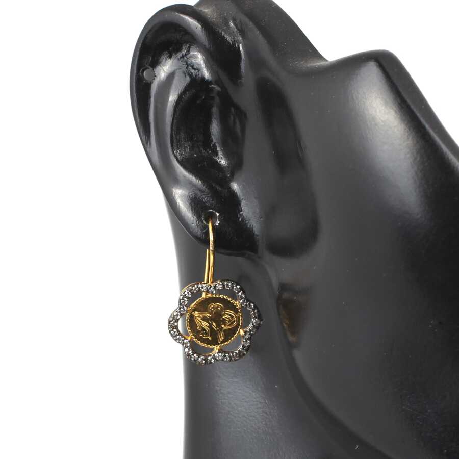 Notify me when its in stockAltın küpe 22 ayar altından üretilmiştir. Papatya model küpe 2,8 cm'ye1,8 cm boyutlarındadır. Papatya figürü içinde Osmanlı Tuğrası eklenerek tasarlanmıştır. Küpe zirkon taşlıdır. Ağırlığı 5,8 gramdır. Verilen gramlar yaklaşıktır, değişebilir.