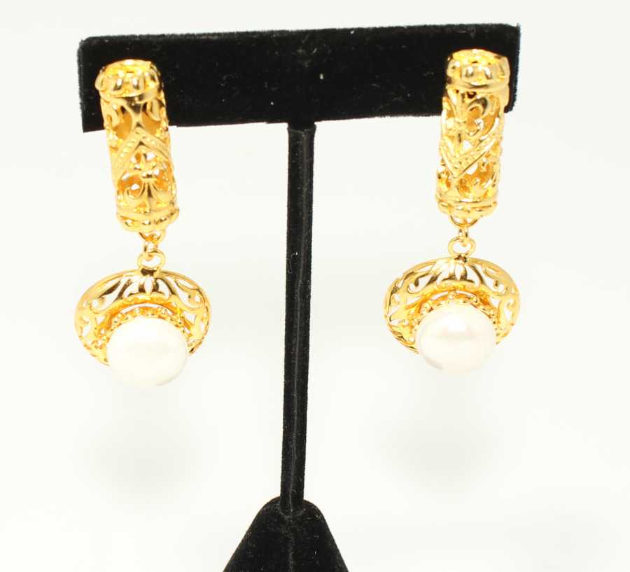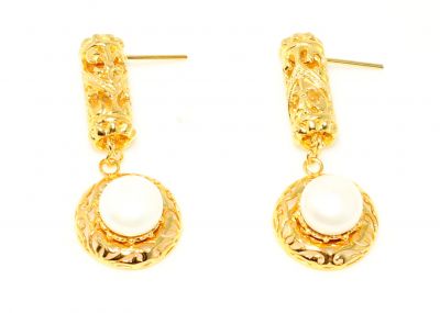 22 karat gold, dangle earrings with pearls, ancient antique design- Weight: 38,7 g