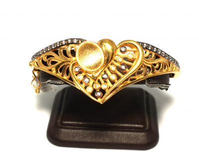 Bilezik 22 ayar altından imal edilmiştir. Kalp model bilezik 6,1 cm çapındadır. Bilezik 2,6 cm enindedir. Bileziğin ortasındaki kalp figürü ve kenarlarındaki ajur desenleri ile tasarlanmıştır. Bilezik zirkon taşlıdır. Bilezik 37,1 gram ağırlığındadır.