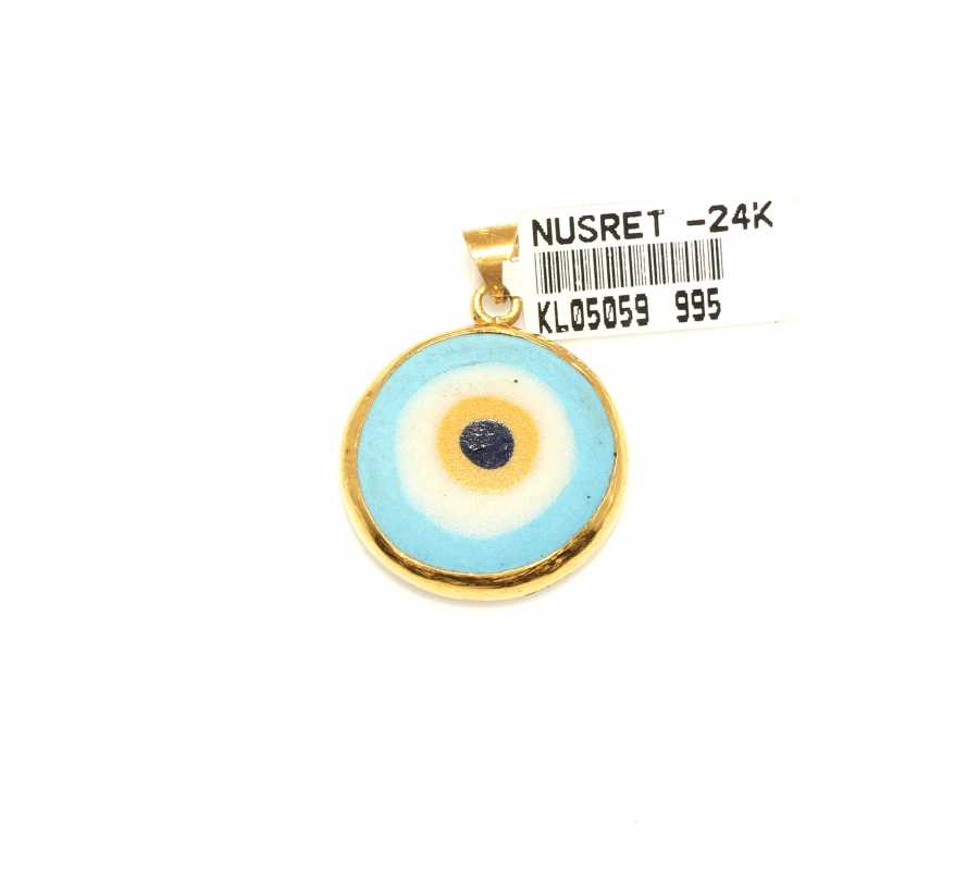 Kolye ucu 24 ayar altından imal edilmiştir. Yuvarlak model göz boncuklu kolye ucu 2,2 cm boyutlarındadır. Zincir dahil değildir. Kolye ucu seramik taşlıdır. Kolye ucu 5,3 gram ağırlığındadır.