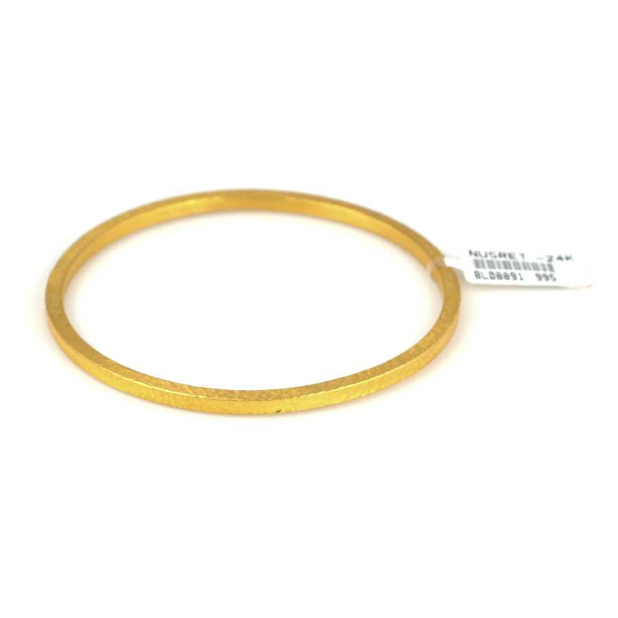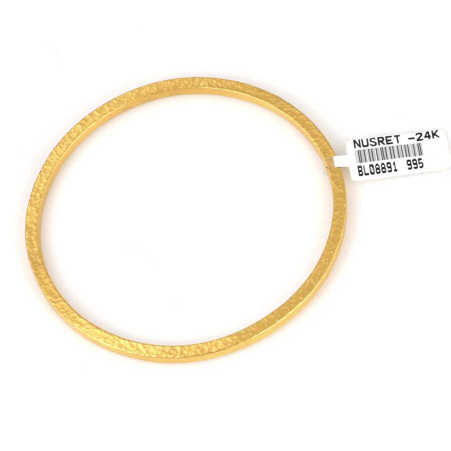 Bilezik 24 ayar altından imal edilmiştir. Dövmeli model bilezik 5,8 cm çapındadır. Kare şarnel şeklinde bilezik 0,3 cm kalınlığındadır. Bilezik taşsızdır. Ağırlığı 15,53 gramdır.