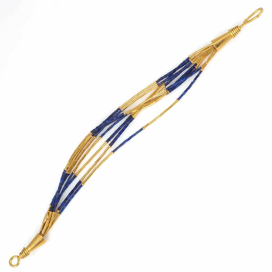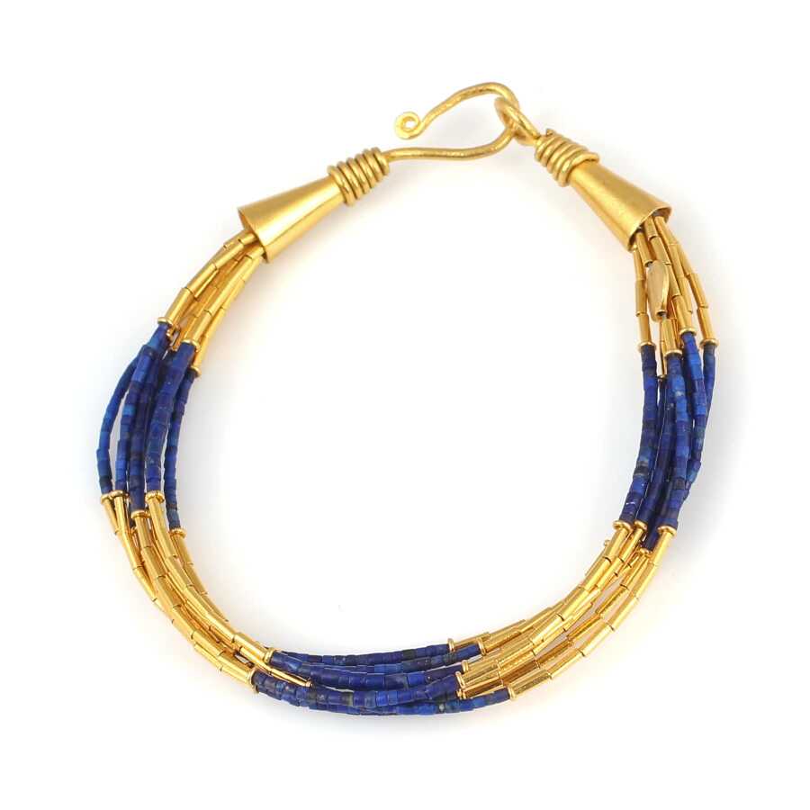 Bileklik 24 ayar altından imal edilmiştir. 8 sıra bileklik 19,5 cm uzunluğundadır. Bileklik 8 sıra olarak dizilmiştir. Bileklik lapis taşlıdır. Ağırlığı 19,17 gramdır.