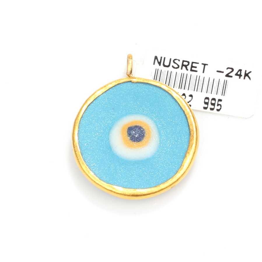 Notify me when its in stock Kolye ucu 24 ayar altından imal edilmiştir. Mavi renk yuvarlak model göz boncuklu kolye ucu 2,8 cm'ye 2,3 cm boyutlarındadır. Zincir dahil değildir. Kolye ucu seramik taşlıdır. Kolye ucu 2,2 gram ağırlığındadır.