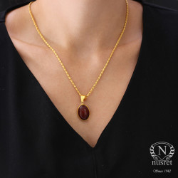 24 ayar altından kenarları çerçeve çevrilerek yapılan akik taşlı kolye ucu tamamı el işidir. Gramı 6,25 gr