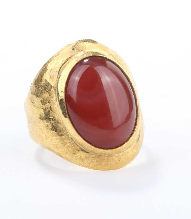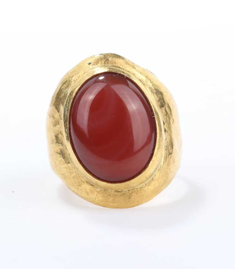 Notify me when its in stockYüzük 24 ayar altından üretilmiştir. Tüm ölçüler yapılabilmektedir. Yüzüğün üst kısmı 2,7 cm boyutlarındadır. Primitif dövmeli yüzük akik taşlıdır. Ağırlığı 11,35 gramdır.