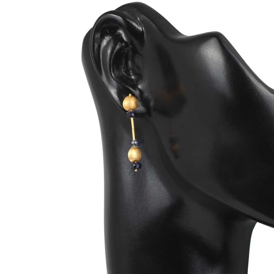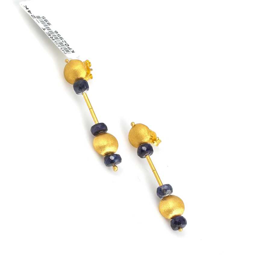 24 Ayar Altın Safir Taşlı Sallantılı El İşi Küpe