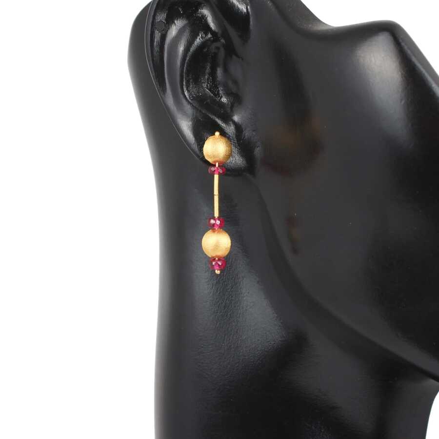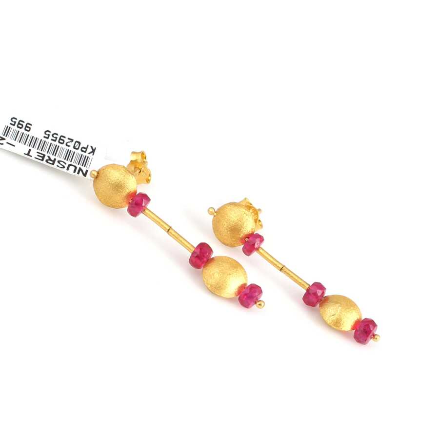 24 Ayar Altın Yakut Taşlı Sallantılı El İşi Küpe