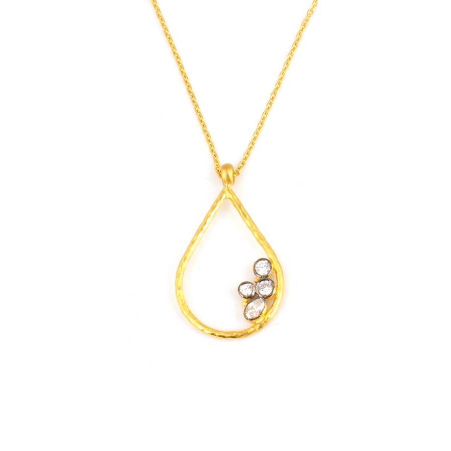 24 ayar altındır. Kolye 44 cm uzunluğunda. Elişi damla şekilli zirkon taşlı kolye. Gramı: 13,37 gr.
